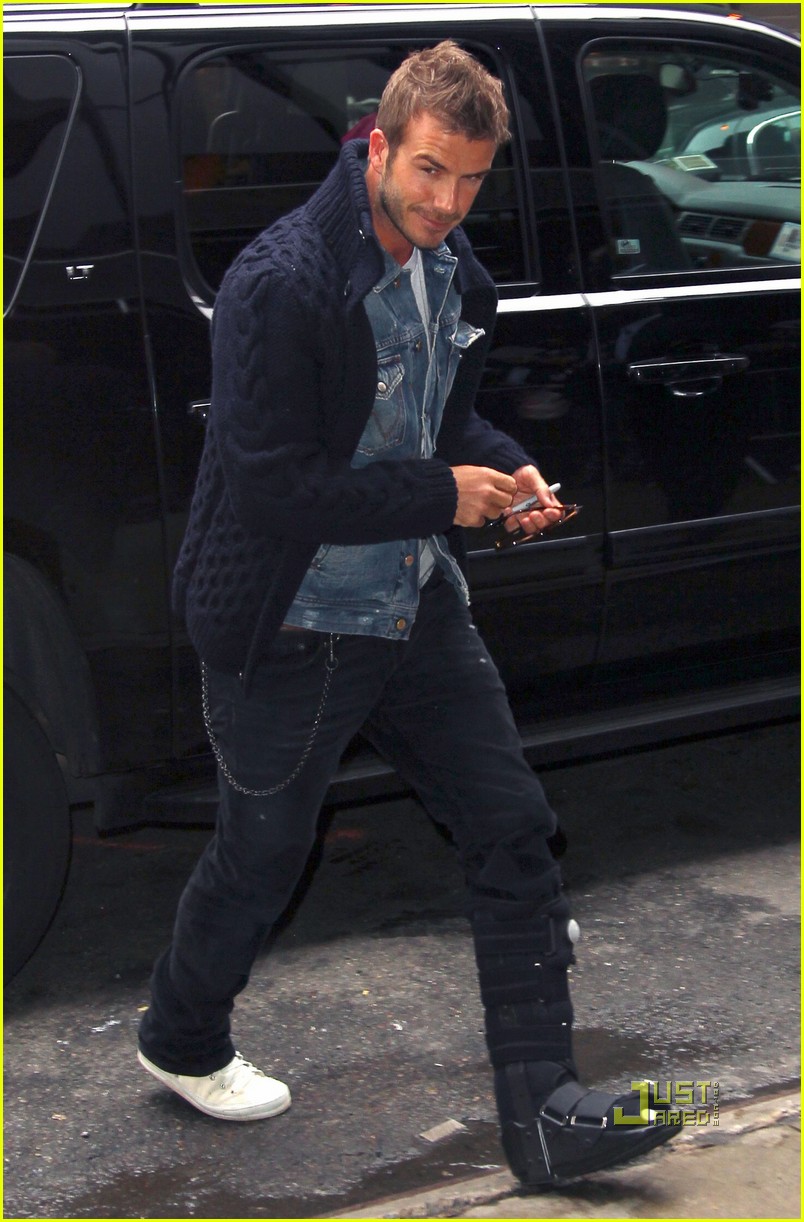David Beckham suits up for an appearance on Good Morning America in New York City on Monday - April 26. The 34-year-old soccer star signed autographs for everyone in the studio and explained that while he’s disappointed about his Achilles tendon injury, he’s making the best of his time off.