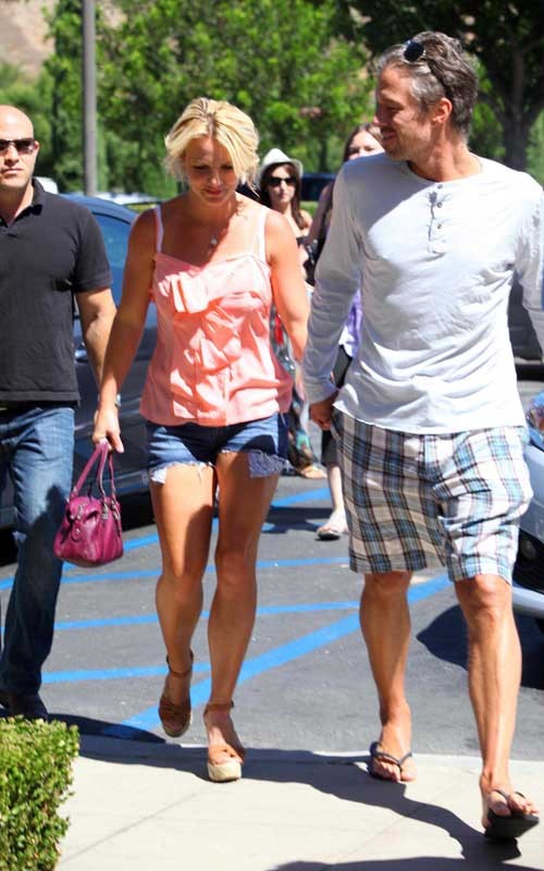 Bringing an end to a relaxing weekend, Britney Spears and her boyfriend Jason trawick went out to do some shopping on the commons in Calabasas CA Sunday morning 23 August. wearing a cute pink top with ripped jean short and a few wedge heels, the womanizer singer as Darling as she held hands with her husband during the day begins retail romp.