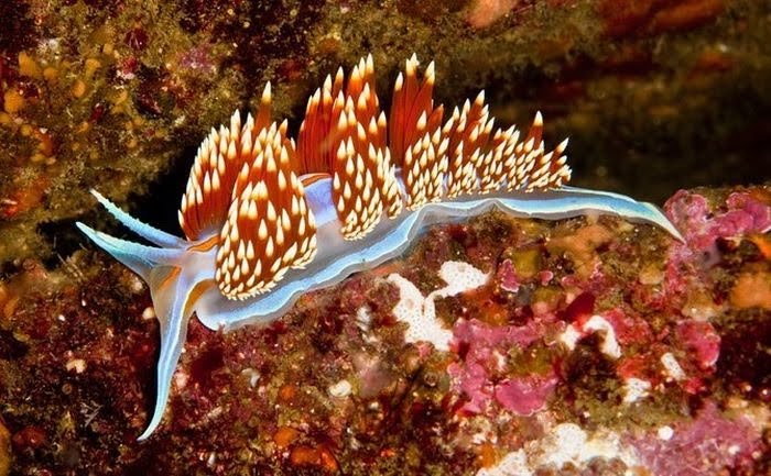 Other seabed creatures including giant clams, sea cucumbers, seahorses and starfish - including one who hunts coral polyps. Octopus is another mollusk with eight legs and looks like a different kind of a big spider. All eight members, called tentacles come out of a lump of jelly-like meat with eyes and mouth. The prey fish and shellfish with tentacles equipped with millions of suckers. Suckers have a tube-like opening on the surface of the legs. Octopus prefers to lurk on the ocean floor behind plants, or among the stone holes. If even feel threatened, they flee in a jet speed by darting out a strange liquid that makes murky water around.